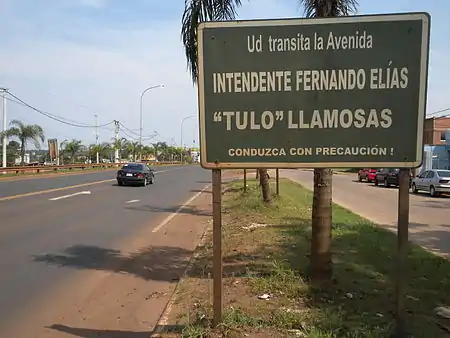 Avenida Intendente Fernando Elías "Tulo" Llamosas por Ruta Nacional 12 en Posadas.