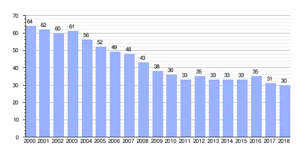 Gráfica de evolución demográfica de Ferraces entre 2000 y 2018 |