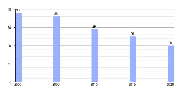 Gráfica de evolución demográfica de Ferreira (aldea) entre 2000 y 2020 |