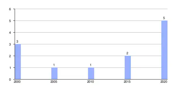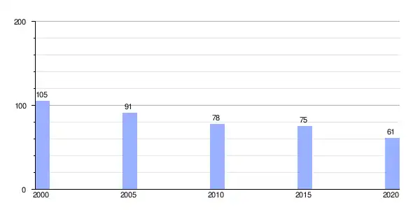 Gráfica de evolución demográfica de Ferreira (parroquia) entre 2000 y 2020 |