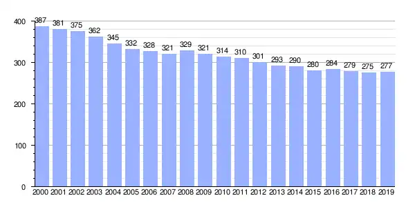 Gráfica de evolución demográfica de Ferreira entre 2000 y 2019 |