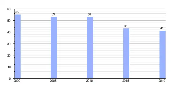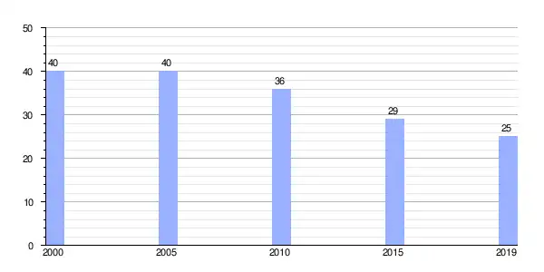 Gráfica de evolución demográfica de Ferreiros (parroquia) entre 2000 y 2019 |