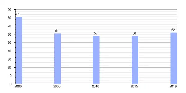 Gráfica de evolución demográfica de Ferreiros de Arriba entre 2000 y 2019 |
