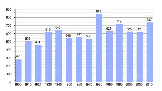 En 2010 registró una población de 737 personas, lo que corresponde al 6.45 % de la población municipal.[12] De los cuales 345 son hombres y 392 son mujeres.[12] Tiene 179 viviendas particulares habitadas.[12]