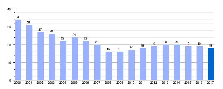 Gráfica de evolución demográfica de Ferreras del Puerto entre 2000 y 2017 |