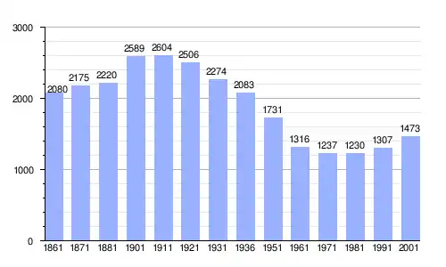 Gráfica de evolución demográfica de Ferrere entre 1861 y 2001 |
