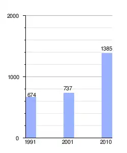 La siguiente gráfica muestra la población de la localidad en los últimos censos.