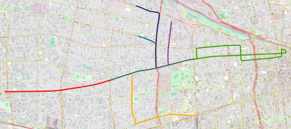 En julio de 1927 Carlo Magno Coggiola solicitaba autorización para construir un ramal del tranvía eléctrico desde San Pablo, siguiendo al norte por la calle General Robles y Walker Martínez (pasando por el sector denominado Tropezón) hasta Carrascal, en donde continuaría al oeste hasta la calle Córdova (actualmente Santiago de Uriona); también se contemplaba un subramal que partiría desde el punto denominado Tropezón (Walker Martínez con Mapocho y José Joaquín Pérez) hasta la esquina con Santa Fe.[16] En febrero de 1928 se otorgó dicha autorización para el ramal a Carrascal,[17] sin embargo no fue construido y la concesión fue caducada en diciembre de 1929.[18]