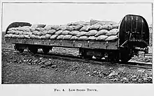 Kitson and Company fabricó cinco locomotoras 0-8-4T (con una distribución uniforme de la carga por eje) según las especificaciones de Calthrop. El material rodante de mercancías fue construido sobre bastidores estándar de acero prensado de 25 por 7 pies (7,62 por 2,13 m), lo que reducía el peso de tara y maximizaba las cargas del vagón. Calthrop reconoció la importancia de los ferrocarriles en la guerra y diseñó los trenes para facilitar el movimiento de tropas y equipos. El material rodante se montó sobre bogies Fox de acero prensado, utilizando el sistema Timmis de muelles dobles.[3] La línea se construyó con inclinación del carril (entonces una idea novedosa), lo que implicaba inclinar el riel unos grados para que su superficie sea más paralela a la del borde de las ruedas. En la actualidad, esta inclinación se aplica universalmente a los ferrocarriles.[4]