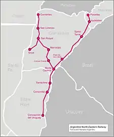 Estaciones principales | Concordia, Monte Caseros, Corrientes, Posadas | |