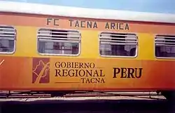 El Ferrocarril Tacna-Arica es un ferrocarril propiedad del Estado del Perú y que brinda el servicio entre la ciudad de Tacna (Perú) y Arica (Chile), esto último se acordó en el Tratado de 1929. Tiene 62 km de extensión y una trocha de 1435 mm. En la actualidad es administrado por el Gobierno Regional de Tacna y se encuentra operativo desde el 28 de mayo de 2016[2][3] ya que había sido suspendido el 12 de marzo de 2012.[4]