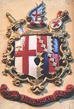 ![]() Escudo de armas de la compañía en las puertas de la estación de Euston originales, que se exhiben en el Museo Nacional del Ferrocarril en York | ||||