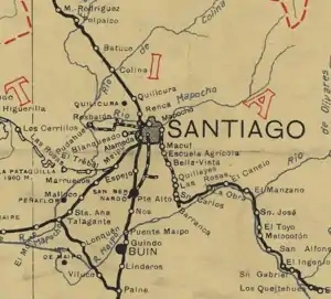 ![]() Trazado del Ferrocarril del Llano de Maipo. | ||||||||||||||||||||||||||||||||||||||||||||||||||||||||||||||||||||||||||||||||||