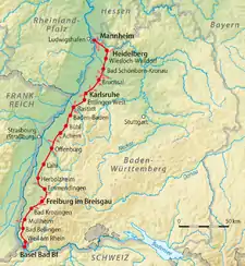 Ferrocarril del valle del Rin (Rheintalbahn) es el nombre dado al trayecto de Mannheim en el norte de Baden-Wurtemberg a Basilea en Suiza a través de Heidelberg, Bruchsal, Karlsruhe, Rastatt, Offenburg y Friburgo de Brisgovia.[1]
