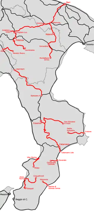 - Línea Bari-Matera-Montalbano Jonico (141,879 km):
