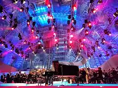 El evento fue realizado en un espectacular escenario junto a la Catedral de Colonia donde los participantes estuvieron a todo momento acompañados por la Orquesta Sinfónica de la WDR de Colonia.