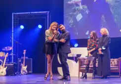 ![]() El presentador Unai Izquierdo y la actriz Abril Zamora, en la Clausura de SZ9 | |||||
