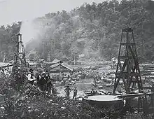 Pronto el área se inundó de pozos perforados por la Seneca Oil Company y por otras compañías. El boom del petróleo en Pensilvania tuvo ciertos parlelismos con la fiebre del oro en California, acontecida diez años antes. Existen datos que afirman que en el primer año (1859), estos pozos de petróleo produjeron 4.500 barriles (720 m³).[1] Comenzó la expansión de ciudades como Titusville, Oil City y Pithole; el reverendo S.J.M. Eaton, comentó en 1866 que en Oil Creek Valley era imposible distinguir los límites de las ciudades, ya que donde terminaba una empezaba otra.[3] La población Titusville pasó de tener 250 habitantes a tener más de 10.000 en poco más de cinco años. Se construyeron forjas para suministrar herramientas de perforación y se construyeron ocho refinerías de petróleo entre 1862 y 1868. Pithole pasó de tener cuatro cabañas a convertirse en una bulliciosa ciudad con más de 50 hoteles en un lapso de cinco meses en el año 1865.[9]