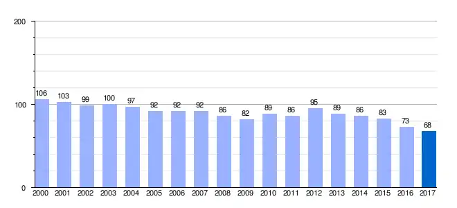 Gráfica de evolución demográfica de Figueruela de Abajo[7] entre 2000 y 2017 |