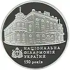 Medallón con la imagen de la Filarmónica Nacional de Ucrania.