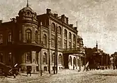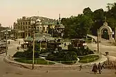 Para finales del siglo xix, el desarrollo cultural de Kiev —entonces importante centro comercial del suroeste del Imperio ruso— estaba en su apogeo. En 1881, el Consejo de Ancianos de la Asamblea de Mercaderes (o de Comerciantes) de Kiev consiguió el permiso para establecer un área recreativa en la Tsarskaya («plaza del Zar», actualmente la plaza Europea), donde un año después (1882) se erigió la Casa del Mercader. El edificio, construido en tiempo récord para la época, se ubicada en una zona verde y pintoresca conocida como Jardines del Zar (diseñados por Francesco Bartolomeo Rastrelli más de un siglo antes),[3] en las elevaciones que constituyen las orillas del Dniéper, paralelo a la Bajada de San Volodymyr, que se convertiría en ese momento en el Jardín de los Comerciantes.[5][3]