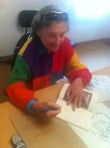 ![]() Fina Miralles en la presentación de su obra "Serrallonga" en Agramunt en 2015 | ||