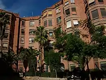 Viviendas y Locales Las 378 viviendas se reparten en catorce unidades o patios; diez de ellos iguales, con pisos de unos 100 metros cuadrados, y otros cuatro patios, los correspondientes a los chaflanes, de pisos más grandes. La última planta es abuhardillada, donde se instalan unos trasteros que completan el equipamiento de la finca.