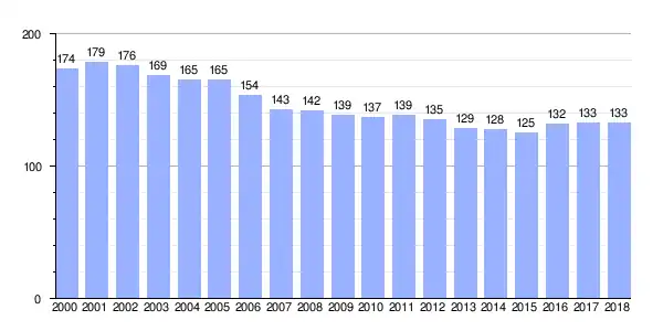 Gráfica de evolución demográfica de Fiobre entre 2000 y 2018 |