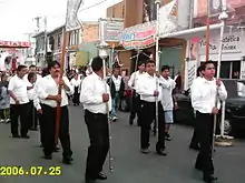 Para la celebración de las imágenes más importantes de Santa Ana Chiautempan se encuentran los mayordomos y diputados, distribuidos en 4 columnas, las cuales son: