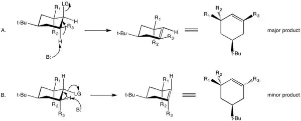 Además de la estabilidad molecular, el análisis conformacional se utiliza para predecir los productos de reacciones. Un ejemplo comúnmente citado del uso de este análisis es la reacción de eliminación bimolecular (E2). Esta reacción ocurre inmediatamente cuando el nucleófilo ataca la especie que es antiperiplanar al grupo saliente. El análisis del orbital molecular A para este fenómeno sugiere que esta conformación otorga el mejor traslape entre los electrones en el orbital de enlace R-H σ, que se encuentra bajo un ataque nucleofílico, y el antienlace vacío σ* del enlace R-X que está siendo roto.[8] Con este efecto, puede usarse el análisis conformacional para diseñar moléculas que tengan reactividad mejorada.