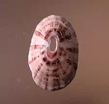 - Fissurella microtrema Sowerby, 1835Fissurella radiosa tixierae, vista apical