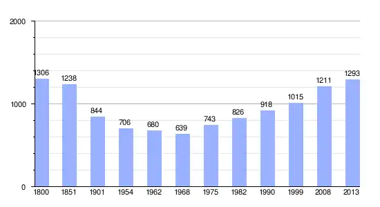 Los datos entre 1800 y 2013 son el resultado de sumar los parciales de las tres comunas que forman la nueva comuna de Flancourt-Crescy-en-Roumois, cuyos datos se han cogido de 1800 a 1999, para las comunas de Bosc-Bénard-Crescy,[4] Épreville-en-Roumois[5] y Flancourt-Catelon[6] de la página francesa EHESS/Cassini. Los demás datos se han cogido de la página del INSEE.[7]