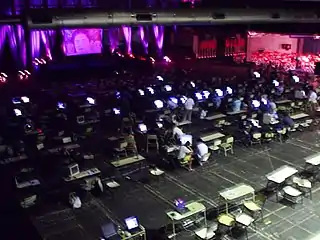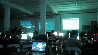 Desde 1998 la flashparty se lleva a cabo entre septiembre y noviembre, por lo general dura tres días comenzando un viernes al mediodía y terminando el domingo a la tarde. Los participantes se reúnen en un ‘campamento digital’ a donde concurren con sus computadoras personales y se instalan en el recinto para poder disfrutar de los espectáculos, tales como sets de música en vivo, performances, instalaciones, charlas y conferencias. Durante el día se exponen los trabajos realizados previamente por los participantes a fin de participar en competencias que se dirimen por la votación del público presente. Por la noche se realizan ‘competencias relámpago’ que motivan a los participantes a generar obras in situ y con un tiempo de desarrollo pre-establecido para después presentarlas durante el evento y someterlas a votación. Estas compos relámpago tienen diversas temáticas como por ejemplo gráficos, música y pequeñas piezas programadas. En general, la competencia relámpago más esperada suele ser la de ascii/ansi, que a su vez permite la colaboración de diversas personas para la creación de una única pieza en simultáneo mediante un programa de dibujo.