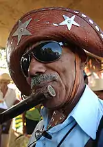 El músico 'Zé do Pífano (Francisco Gonçalves da Silva) tocando el pife brasileiro en el primer encuentro de culturas populares (Brasília, 2006).
