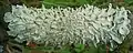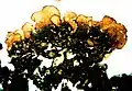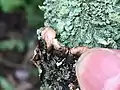 - Superficie inferior de un lóbulo que muestra un margen de color canela pálido sin rizinas.