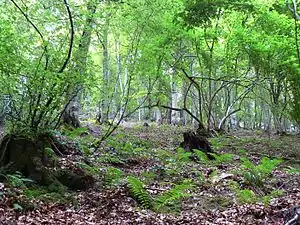 Los hayedos son bosques en los que la especie dominante deja muy pocas oportunidades a otras especies arbóreas y que por lo general carecen de estrato arbustivo propiamente dicho. El estrato herbáceo es homogéneo y poco desarrollado, debido a la escasa cantidad de luz que alcanza este nivel. Entre las especies más significativas se encuentran el ajo de oso (Allium ursinum) o la orquídea Neottia nidos-avis.