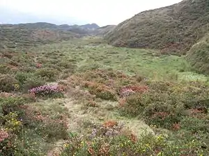 Por último, ya en situaciones elevadas bastante alejadas del mar, crecen los matorrales de brezo (Erica vagans), genista (Genista occidentalis) y tojo (Ulex europaeus).