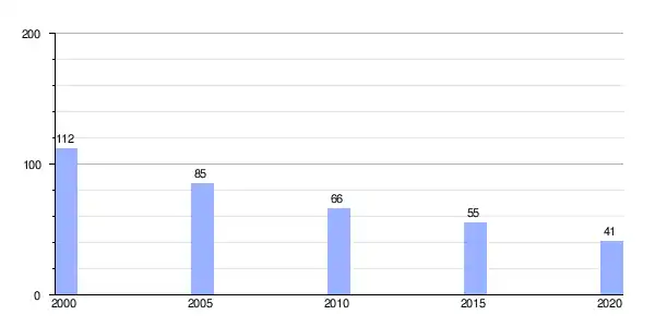 Gráfica de evolución demográfica de Florderrey entre 2000 y 2020 |