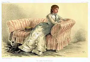 Una litografía más significativa, de Théobald Chartran, impresa en color, apareció en Vanity Fair en 1884 y es una de las largas series de caricaturas publicadas en la revista entre 1868 y 1914. Todas eran ilustraciones en color de personas notables de la época, y cada una iba acompañada de una breve biografía (generalmente aduladora). De las más de dos mil personas tan honradas, solo dieciocho eran mujeres. Destacada en la revista el 5 de enero de 1884, se unió a esta pequeña banda, que incluía a la reina Isabel II de España (1869), Sarah Bernhardt (1879), la princesa de Gales (1882) y Angela Burdett-Coutts, primera baronesa Burdett-Coutts (1883). Victoria, princesa real e Isabel, emperatriz de Austria, siguieron más tarde en 1884.[36]