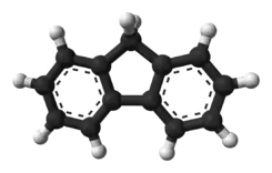 La molécula de fluoreno es casi plana,[3] aunque cada uno de los dos anillos bencénicos es coplanar con el carbono central 9.[4]