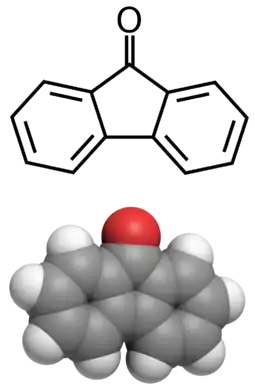 La fluorenona es un compuesto orgánico aromático de fórmula química C13H8O, inflamable. Se utiliza en la fabricación de compuestos químicos más complejos, utilizados como remedios contra la malaria. Fue uno de los primeros medicamentos disponibles ampliamente con eficacia antivírica probada. Se puede producir oxidando el fluoreno de diversas formas. Un método más lento incluye utilizar oxígeno atmosférico, aunque se pueden utilizar oxidantes muy comunes en el proceso si se desea una obtención más rápida.