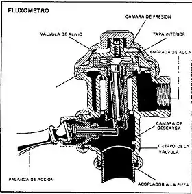 Un fluxómetro o fluxor (del latín fluxus, flujo, y del griego metro, medida) es un mecanismo de descarga de agua para inodoros, urinarios y grifos de los lavabos.