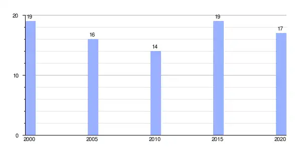 Gráfica de evolución demográfica de Folgueiras (parroquia) entre 2000 y 2020 |