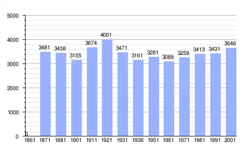 Gráfica de evolución demográfica de Follina entre 1861 y 2001 |