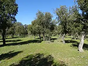 Se conserva todavía en el pueblo una bodega monumental que perteneció al marqués de la Conquista, en desuso desde hace muchos años. Tiene un cañón[lower-alpha 3] de casi un km y una sisa[lower-alpha 4] de 300 metros donde estaban los grandes toneles. En 1957 todo el mobiliario se desmanteló y se reubicó en grandes bodegas de Andalucía.[17]