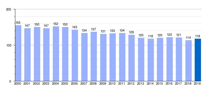 Gráfica de evolución demográfica de Foncastín[24] entre 2000 y 2019 |