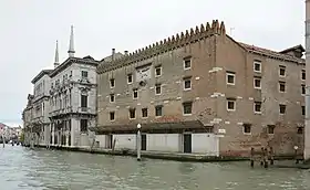 Se trata de la construcción con la fachada más sobria del Gan Canal, constituyendo la típica casa-almacén. En la planta al nivel del Canal hay tres portales rectangulares y en las tres plantas superiores se distribuyen trece ventanas de forma un tanto irregular. Como decoración, en la zona central del último piso se sitúa un bajorrelieve del león de San Marcos, símbolo que se colocaba en los edificios públicos de la República, copia del original destruido durante la caída de la ciudad-estado, obra de Carlo Lorenzetti. Destaca también, la fila de almenas en la cornisa del edificio.