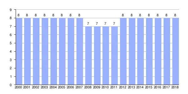 Gráfica de evolución demográfica de Fondevila entre 2000 y 2018 |