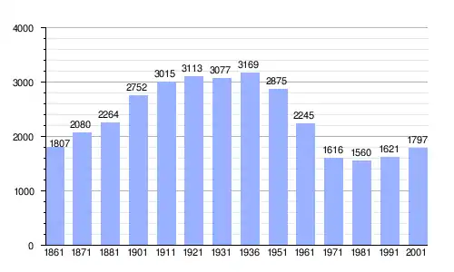 Gráfica de evolución demográfica de Fontanelice entre 1861 y 2001 |