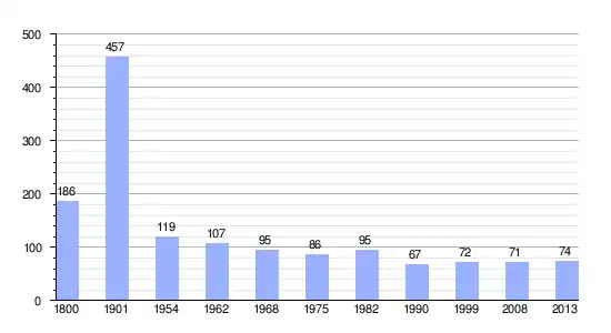 Los datos demográficos contemplados en este gráfico de la comuna de Fontanes-du-Causse[4] se han cogido de 1800 a 1999 de la página francesa EHESS/Cassini, y los demás datos de la página del INSEE.[5]